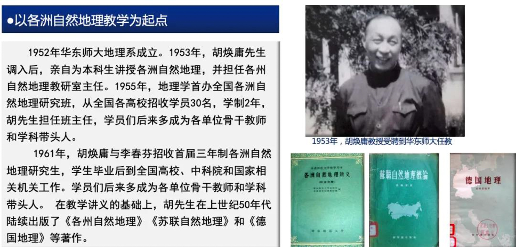 1953年,胡焕庸加入完美网页版地理系,即为本科生开设世界各洲自然地理课程,担任世界各洲自然地理研究生班的班主任,并招收世界地理方向的研究生。