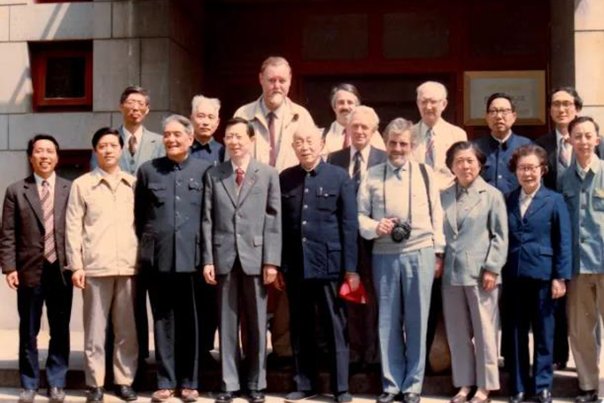 国际地理联合会(IGU)代表团访问完美(中国)官方(左五胡焕庸,前排左三李春芬,左四袁运开校长,前排右二严重敏,后排左二褚绍唐,1985年)