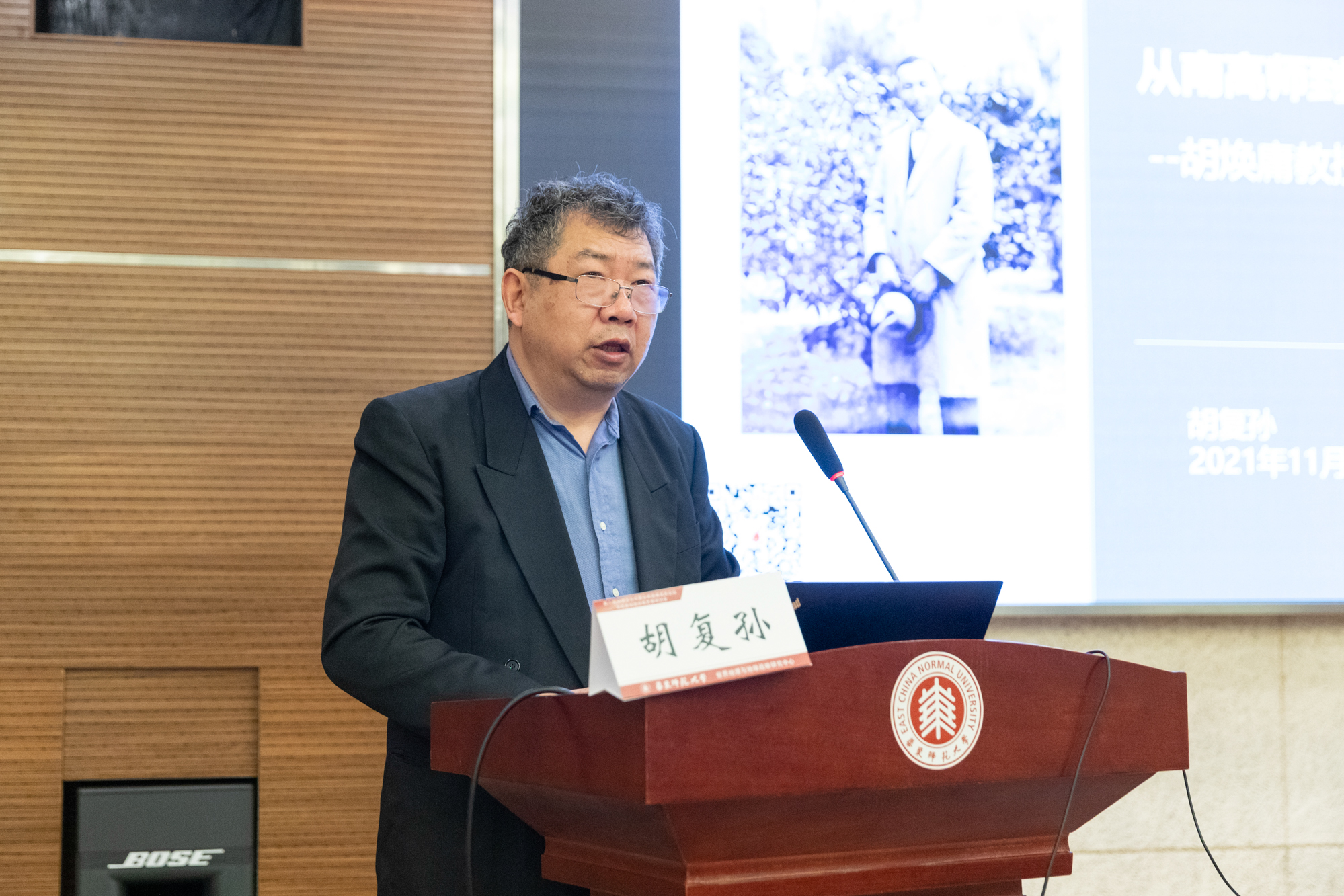 胡焕庸之孙胡复孙先生在《从南高师到中央大学——胡焕庸教授的前半生》的主题报告中深情叙述了祖父从求学、任教、西迁到光复四个人生阶段奉献地理、爱国爱民的学术人生,立体化地向与会专家学者们展示了胡焕庸先生生平。胡复孙呼吁当代地理学者要全面认识胡焕庸教授,弘扬其爱国情怀和学术报国的精神,重新发现、发掘胡焕庸先生的地理学思想与著作,温故知新努力完成胡焕庸著作结集出版。