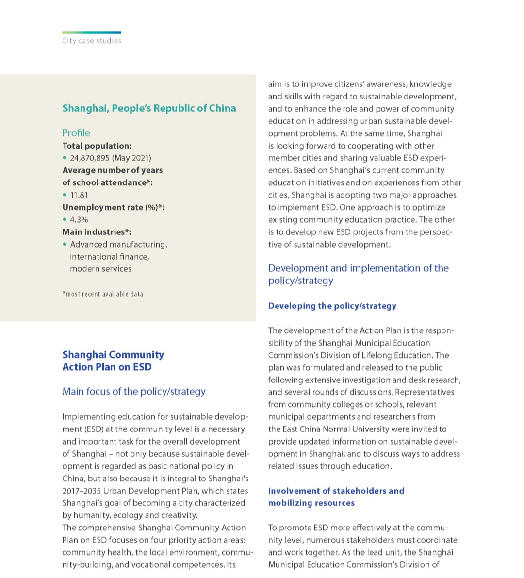 上海可持续发展教育工作经验收入联合国教科文组织2021年的案例集中