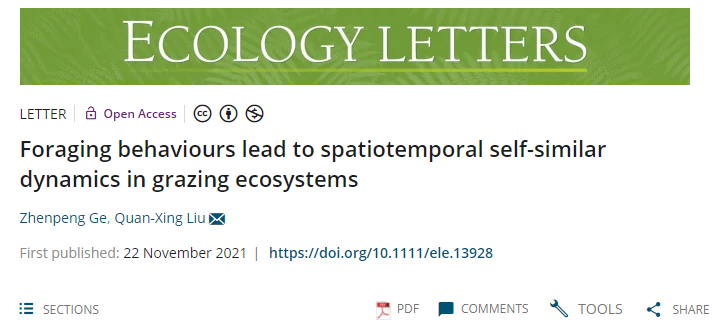 11月23日,国际著名期刊 Ecology Letters 在线刊登了完美网页版刘权兴团队题为 Foraging behaviors lead to spatiotemporalself-similar dynamics in grazing ecosystems 的研究成果。该研究提出新的行为自组织理论框架回答了“食草动物的选择觅食行为是否可以下行控制植被的时空格局”这一科学问题。