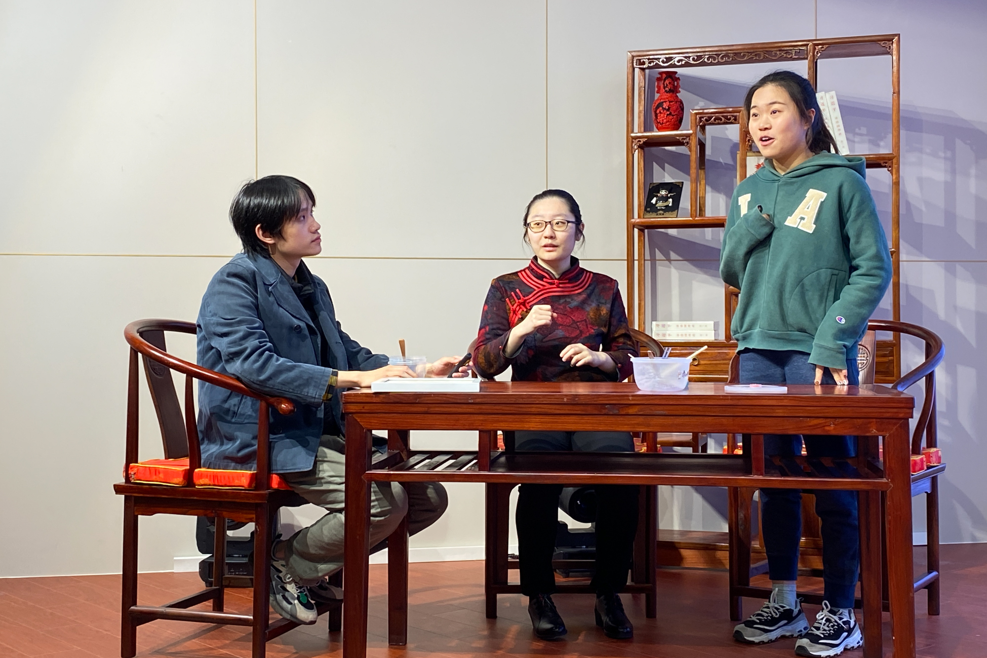 “团队比赛最看重的不是个人能力,而是整体的沟通与协作,这次比赛的成功与我们团队齐心、信心和凝聚力密不可分。”回顾参赛过程,作为队长的唐艺馨同学分享了“参赛宝典”:团队中的三位成员分别来自不同的学科和不同的校区,但是从前期准备到最终呈现,他们始终坚持齐心协力,按照各自的兴趣特长认领任务、充分发挥各自优势、提高效率。面对突发疫情导致的赛制规则的改变,同学们“临危不乱”,在老师的鼓励和指导下迅速调整分工,从声光、走位、台词、运镜等细节入手,认真打磨舞台呈现效果,最终参赛作品被评委称赞为全场最佳。同时,“后援团”凝聚起的专业力量也成为团队“出奇制胜”的法宝。在赛前,拥有丰富比赛经验的学长学姐主动来为团队传经送宝,大学英语教学部的指导老师积极为团队出谋划策。从十月中旬开始补习理论知识,设计与打磨案例的每一个细节,到赛前一晚李辉老师的反复叮嘱,都让同学们感到暖心、安心与信心。团队成员表示,赛后将做好资料与经验的总结和复盘,鼎力相助明年参赛的学弟学妹们,期待学校可以在这项比赛上再创佳绩。