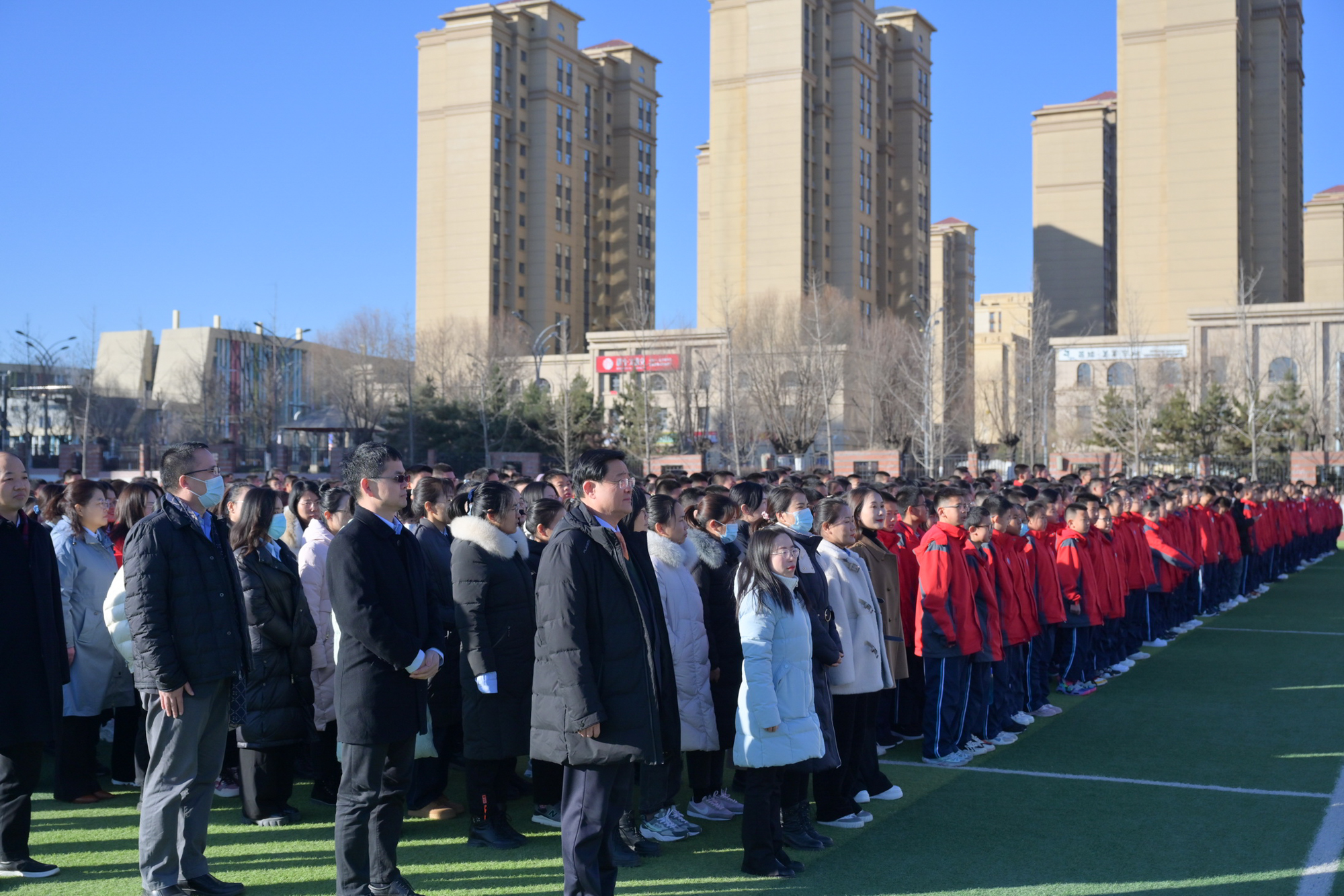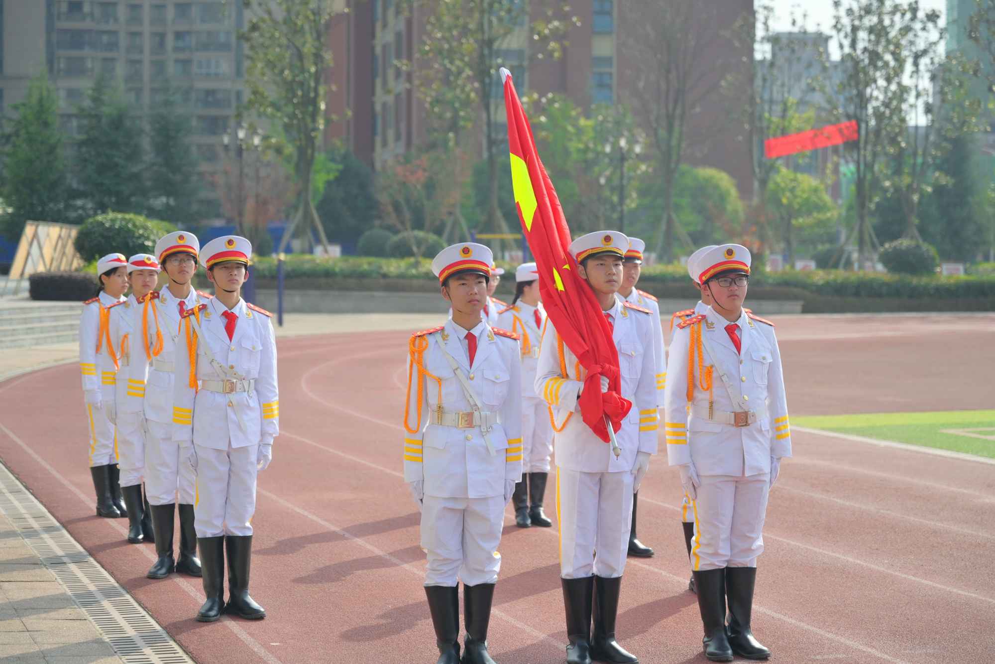 专家组观摩延安市新区第一中学升旗仪式