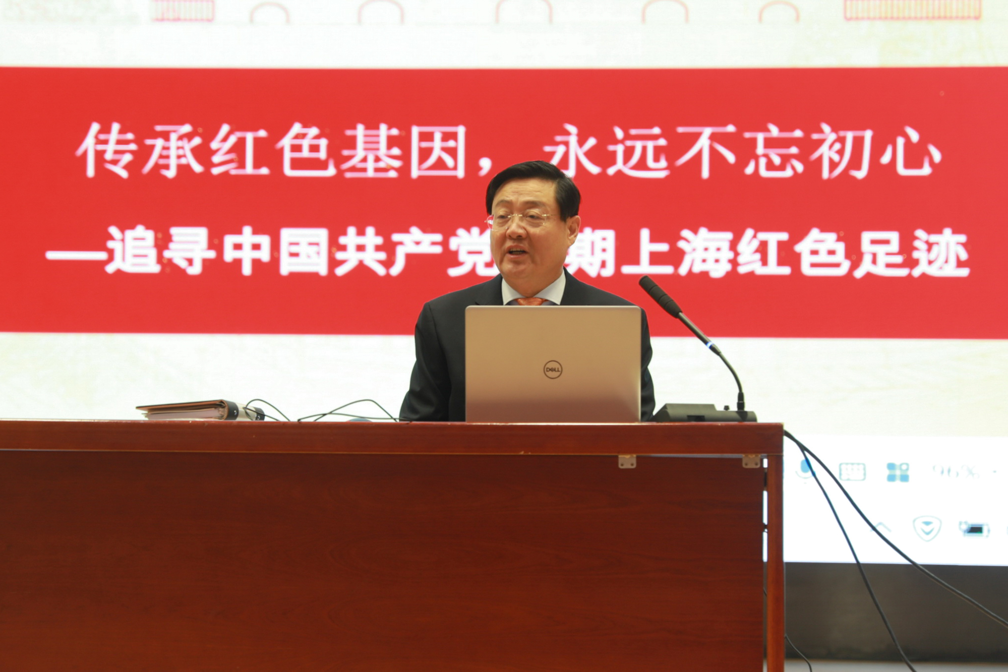 武警上海市总队原副政委、上海市百将公益基金会名誉理事长张长东为五所项目学校的师生宣讲了党的十九届六中全会精神,并作了题为《传承红色基因,永远不忘初心——追寻中国共产党早期上海红色足迹》的报告,从“中国共产党初创前后上海红色足迹”“中共中央早期机关在上海的红色足迹”“革命老一辈的上海红色史迹”“中共中央上海局斗争历程”四个方面给师生们带来了一场精彩的党史学习。