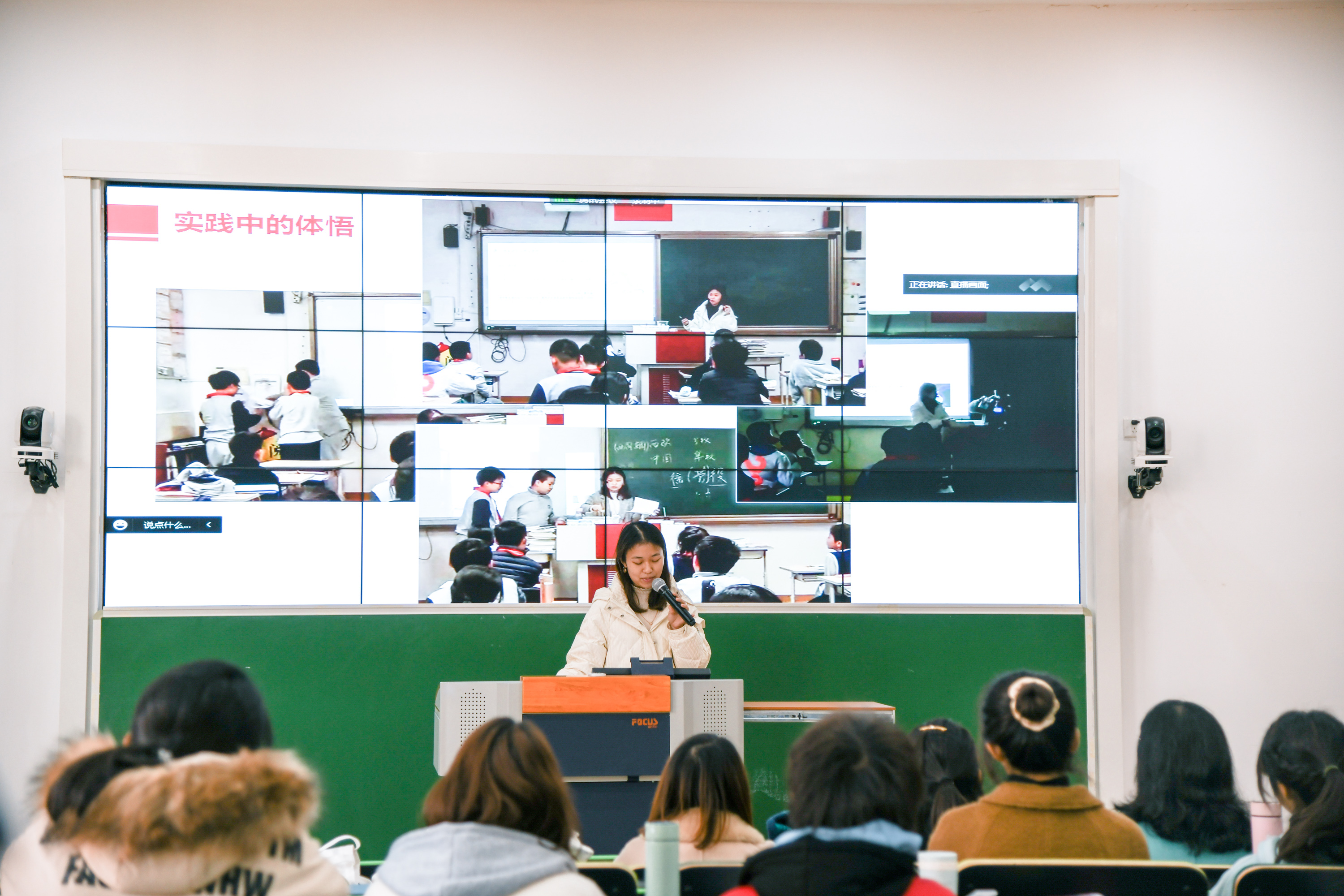 华二附属初中副校长李娜以《课程是学习方式和教学方式的转变》为题,向在座学生分享了如何上好一门好课、如何成为一个优秀教师,以及如何设计和开展项目化学习。她强调,备课要备学生、备所处的时代,并以自己的成长为例阐释了教师发展的过程。她非常强调项目化学习在培养学生能力和思维中的重要作用,指出应高度重视项目化学习在课程开发和实际教学过程中的运用。目前,华二附初正在开展包括学科类、跨学科类的多个项目化学习实践,已经获评上海市义务教育项目化学习种子实验校,希望更多的同学参与到华二附初的教学改革实践中来。
