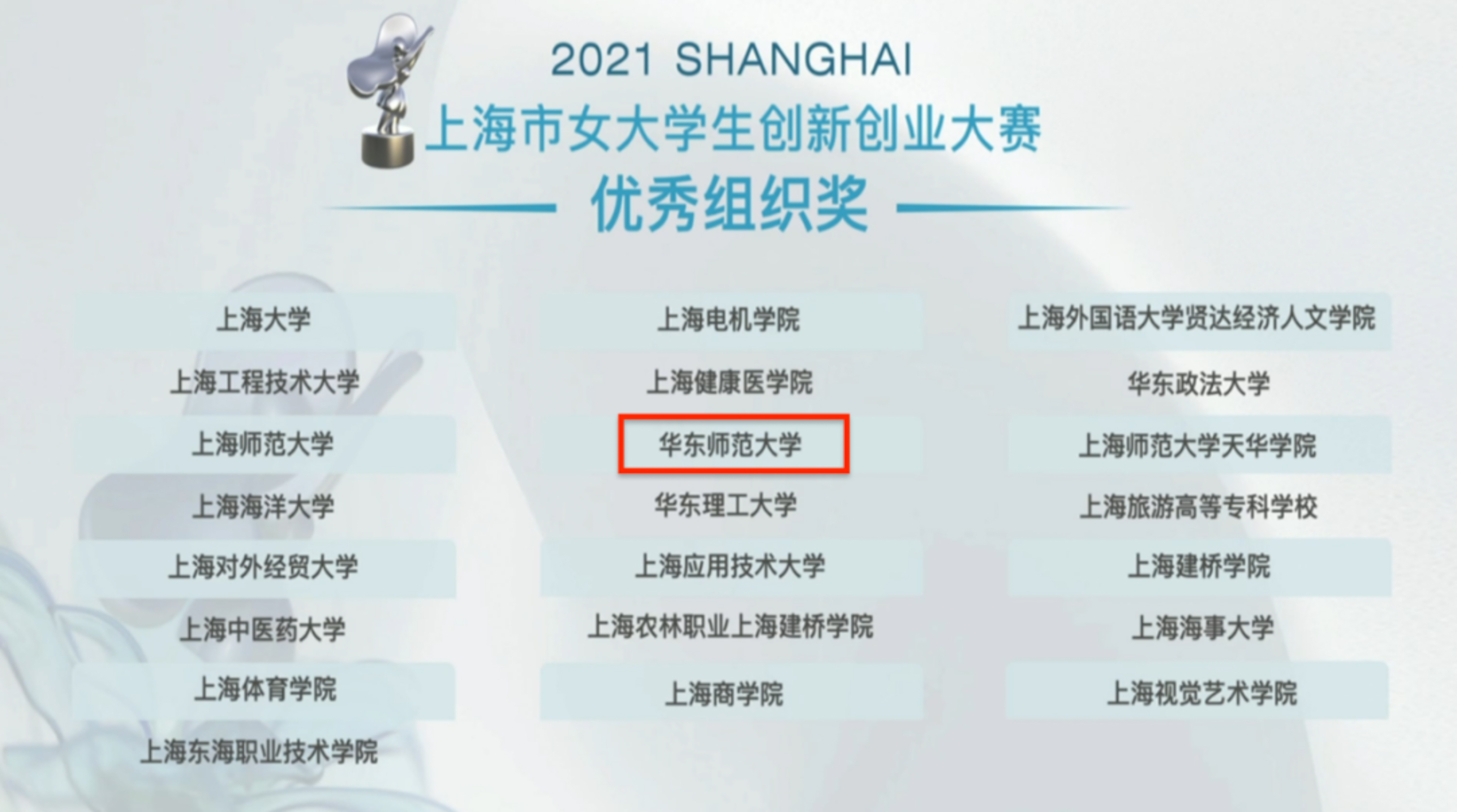 2021年上海市女大学生创新创业大赛完美(中国)官方获奖项目列表