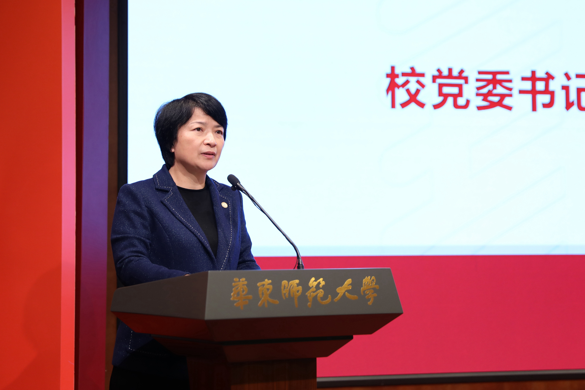 钱旭红强调,对标习近平总书记和党中央对一流大学建设的新期待新要求,对标国家高水平科技自立自强和上海“五个中心”建设对科学知识和优秀人才的迫切需求,对照国内外高校百舸争流的竞争态势,学校在追求卓越、奋进一流的路上还有很多思想上的“拦路虎”和行动上的“绊脚石”。钱旭红指出,2022年,全校师生将深入学习贯彻党的二十大精神,深化习近平总书记关于中国特色世界一流大学建设重要论述的研究与实践,心怀“国之大者”,坚持立德树人根本任务,锚定卓越目标,以卓越党建为引领,以卓越育人为核心,以卓越学术为驱动,以卓越治理为支撑,全力推进学校“十四五”发展规划、新一轮“双一流”建设方案和“三大纲要”落地落实。他希望全体师大人以无愧于新时代的昂扬姿态,为迎接党的二十大胜利召开交上一份奋斗者的时代答卷!