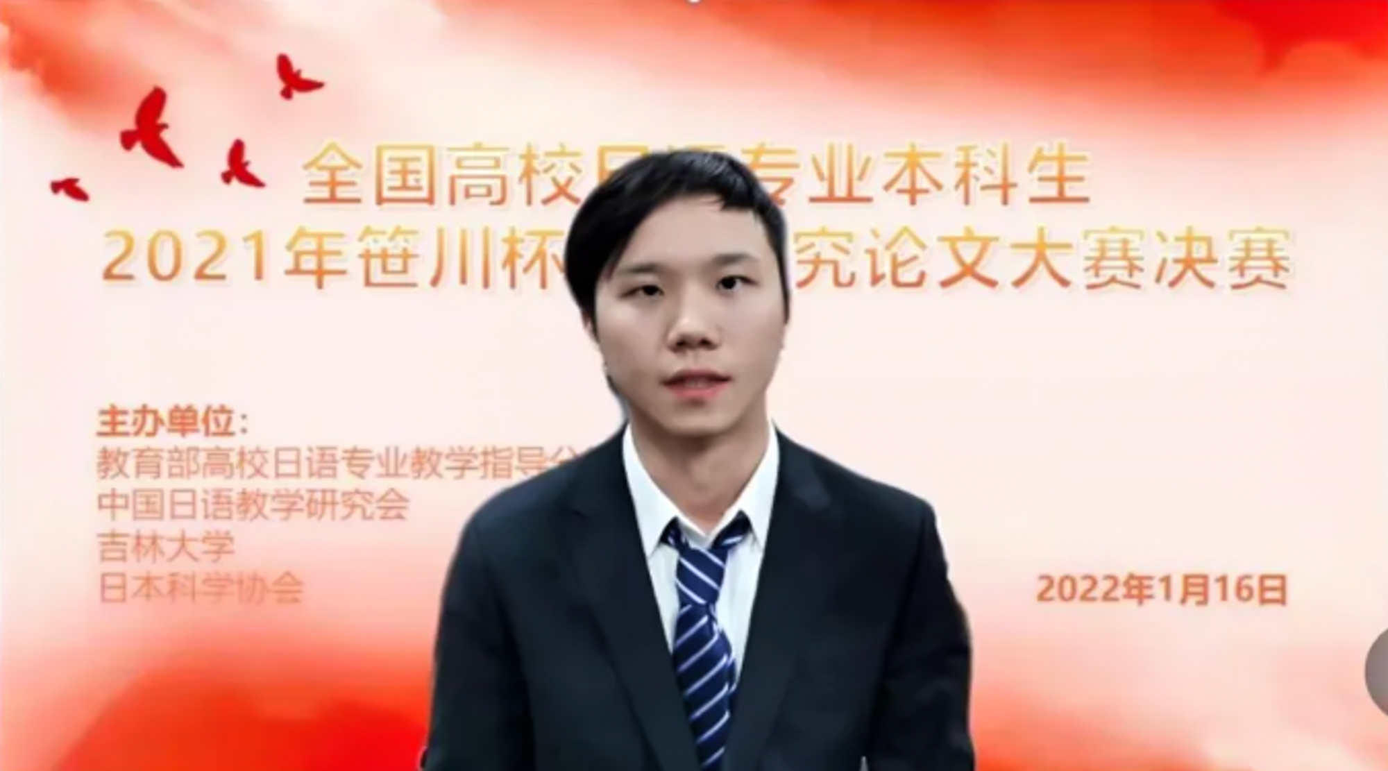 决赛于2022年1月16日在吉林大学举行。受新冠疫情的影响,本次决赛采用线上答辩的方式进行,由参赛选手发言-评委提问-选手回答三个环节构成:每位选手发言时间15-20分钟,评委提问选手回答环节10分钟,选手发言及提问回答均使用日语。最终三组分别评选出特等奖1名、一等奖1名、二等奖3名、三等奖5名,共计30名获奖者。此外还评出语言组11篇、文学组16篇、文化组44篇优秀奖论文。
