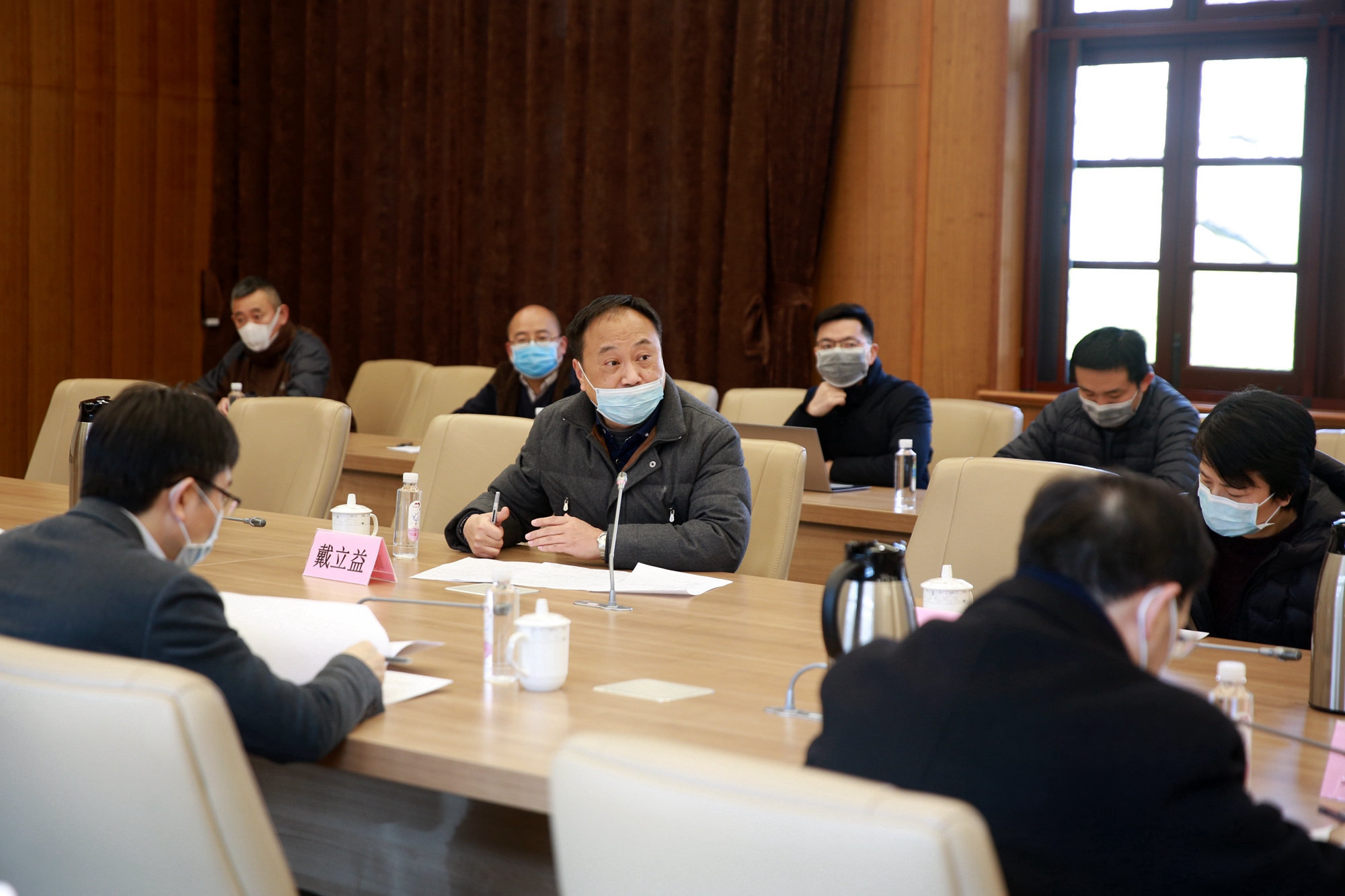 戴立益从人员管理、校园管理、后勤保障、宣传教育服务等方面汇报了学校及时响应落实疫情防控工作相关要求的情况,以及学校师生服务国家和上海市疫情防控的相关举措,重点介绍了学校物资筹措情况、在线教学准备情况,以及开学前的疫情防控工作,指出学校已完成网课平台压力测试,同时也为偏远贫困地区没有条件上网课的学生制定了个性化的解决方案。