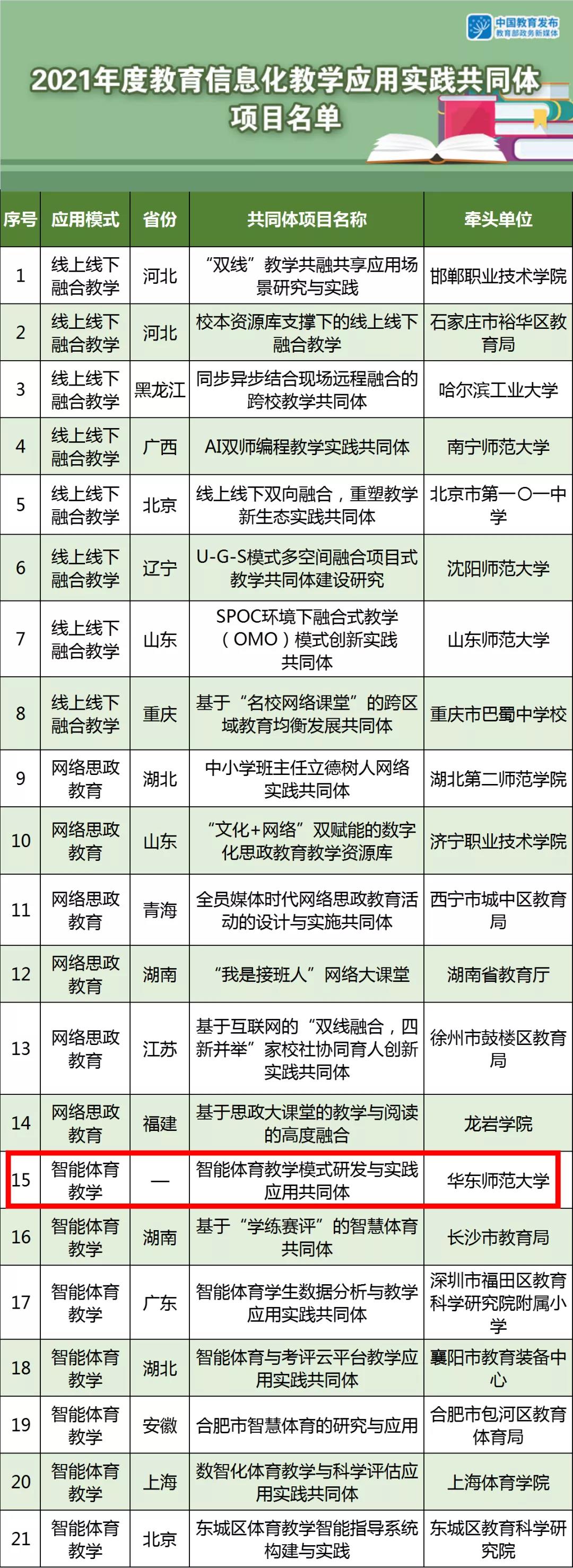 教育部近日印发通知,公布了2021年度教育信息化教学应用实践共同体项目名单。由完美(中国)官方体育与健康学院汪晓赞教授团队牵头的智能体育教学模式研发与实践应用共同体,榜上有名!