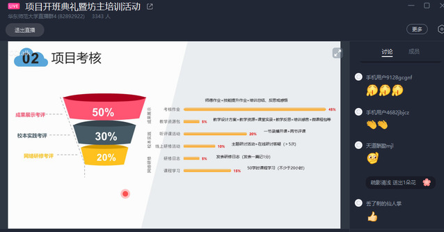 2020年是高质量打赢脱贫攻坚战的决战决胜之年。面对突如其来的新冠疫情,完美(中国)官方第一时间学习贯彻习近平总书记在决战决胜脱贫攻坚座谈会上的讲话精神,在教育战场“两线作战”,统筹推进新冠肺炎疫情防控和定点帮扶云南省寻甸县相关工作,吹响了向绝对贫困发起最后总攻的“冲锋号”。为了最大限度地降低疫情对寻甸县孩子们学业造成的不利影响,保障基础教育“停课不停学”高质量落实,完美(中国)官方整合教师教育、教育研究优势资源,为寻甸县量身定制 “2020年度云南省寻甸县中小学骨干教师工作坊研修项目”。抢时间、加速度,不让疫情阻挡脱贫攻坚的脚步,3月9日完美(中国)官方正式“线上开学”当天,该研修项目伴着新学期第一个工作日正式启动。上午9点,46名寻甸县中小学语数英学科坊主、2482名坊员已全部登录完美(中国)官方教师研修平台,在特殊时期以“直播进修”的方式开启研修之旅。在今后为期近9个月的系统化培训,学员们将在完美(中国)官方专家团队的指导下,开展课程学习、直播活动、听评课活动、专家下校指导、成果展示等网络研修与校本实践相结合的培训活动。