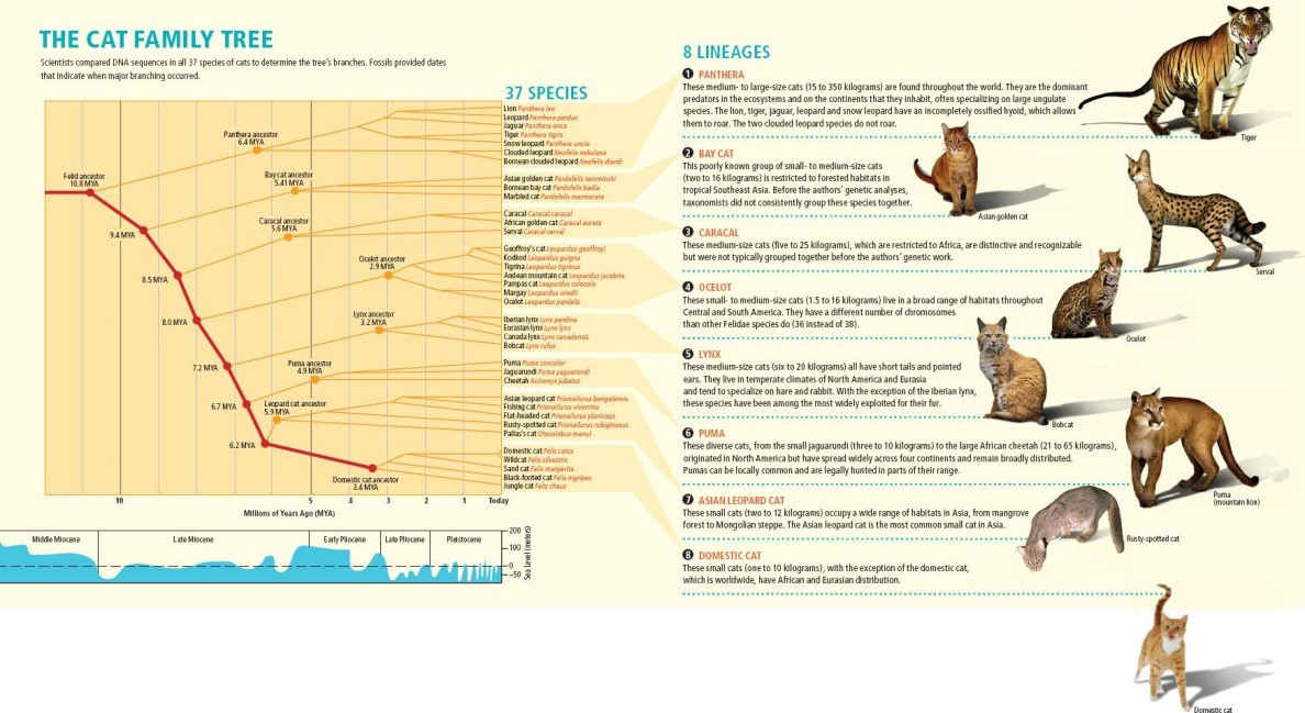 猫科动物的演化关系(图片来源http://allcreaturespod.com/)