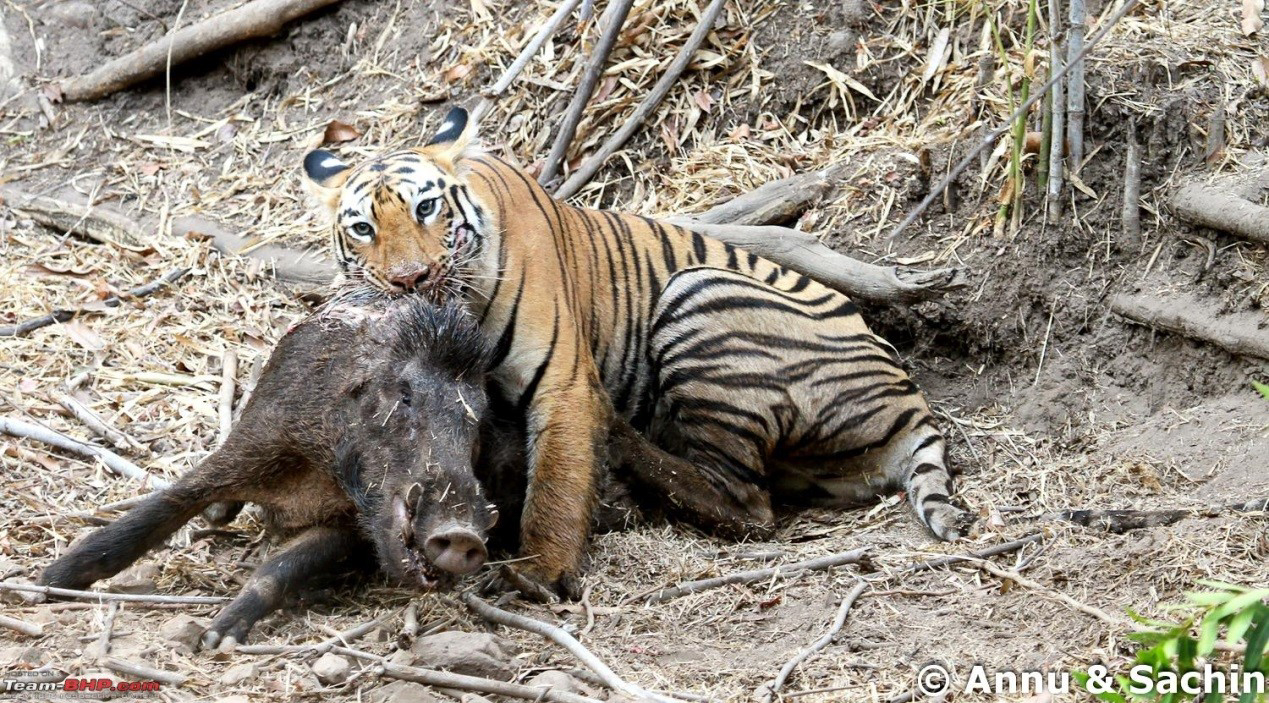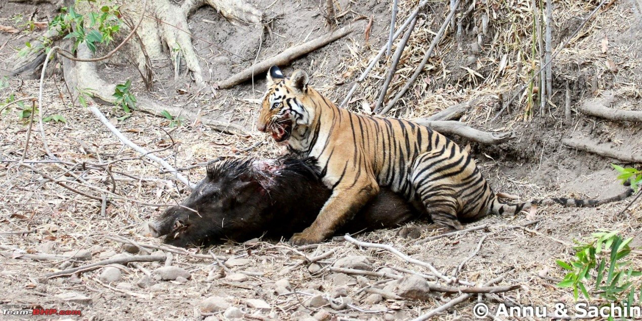 捕食野猪的虎(图片来源 https://www.team-bhp.com/)
