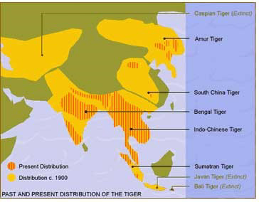 大约距今100万年前虎的分布范围(图片来源 http://crownridgetigers.com/)