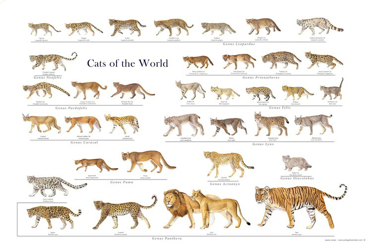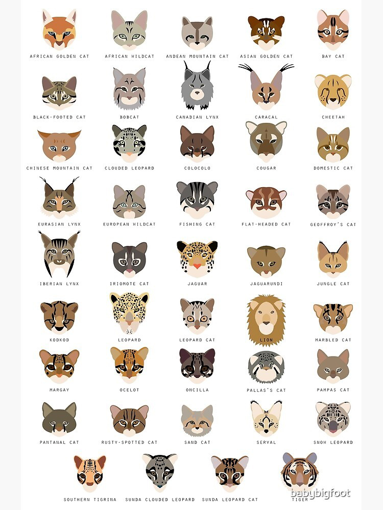 现存的猫科动物(图片来源 http://www.redbubble.com)