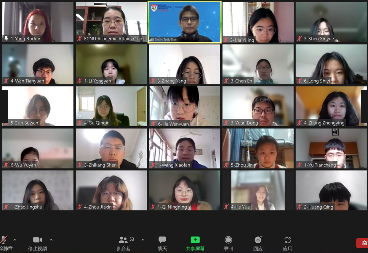 在2月18日举行的结业仪式上,南洋理工大学商业人工智能实验室的Teoh Teik Toe教授对同学们提交的科研论文进行了细致的点评,鼓励大家勤于探索、积极投身科研,寄语同学们在学术道路上获得更大进步。我校20级数学与应用数学专业本科生杨瑞筠同学作为学生代表发言,总结了在整个项目中的收获与成长,感谢学校提供的宝贵交流学习机会和南洋理工大学教授与助教提供的支持与帮助。