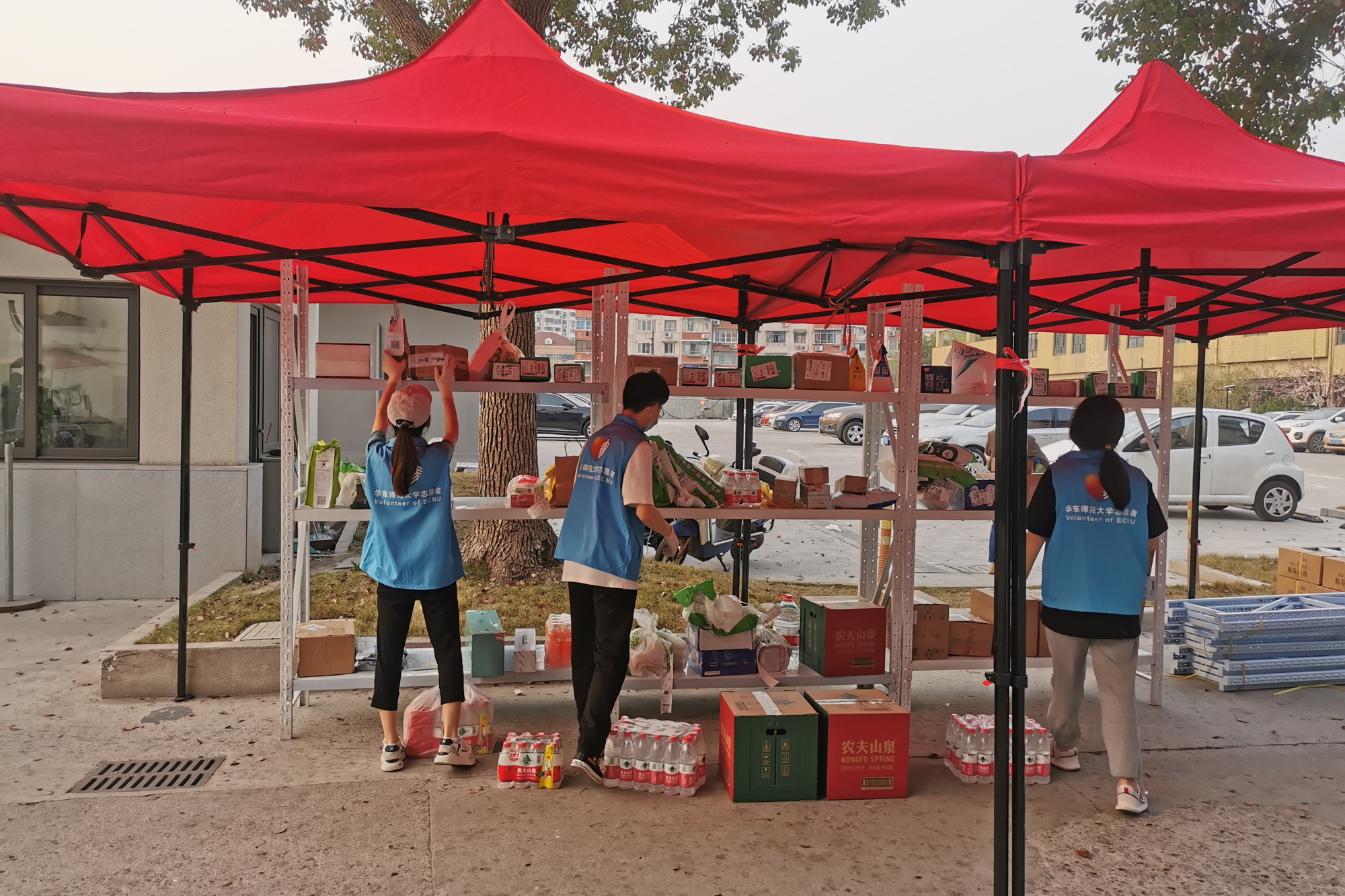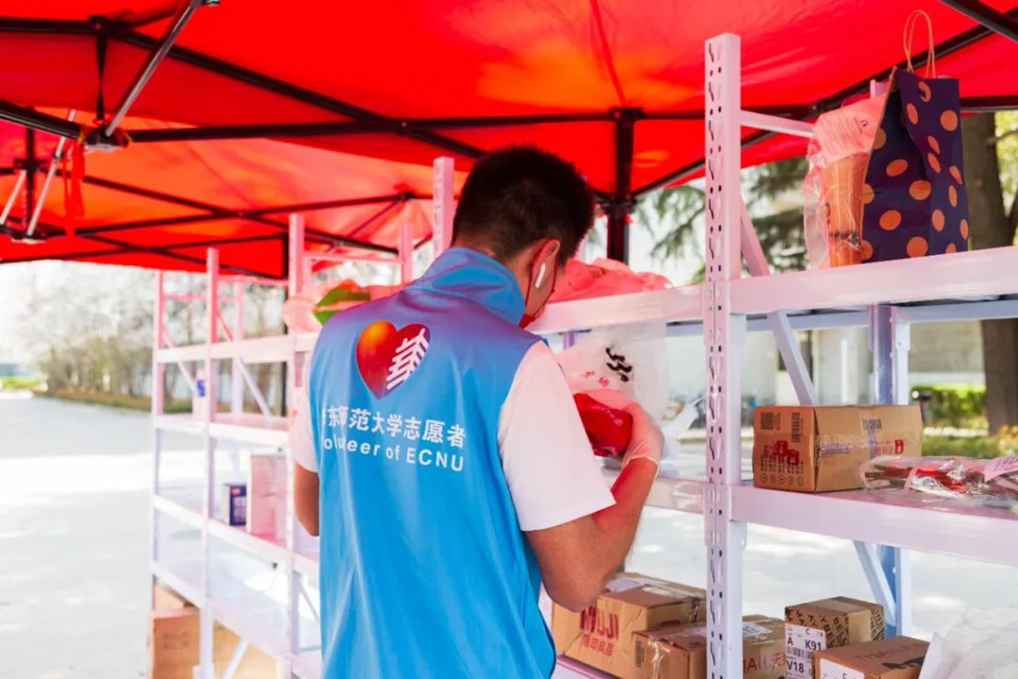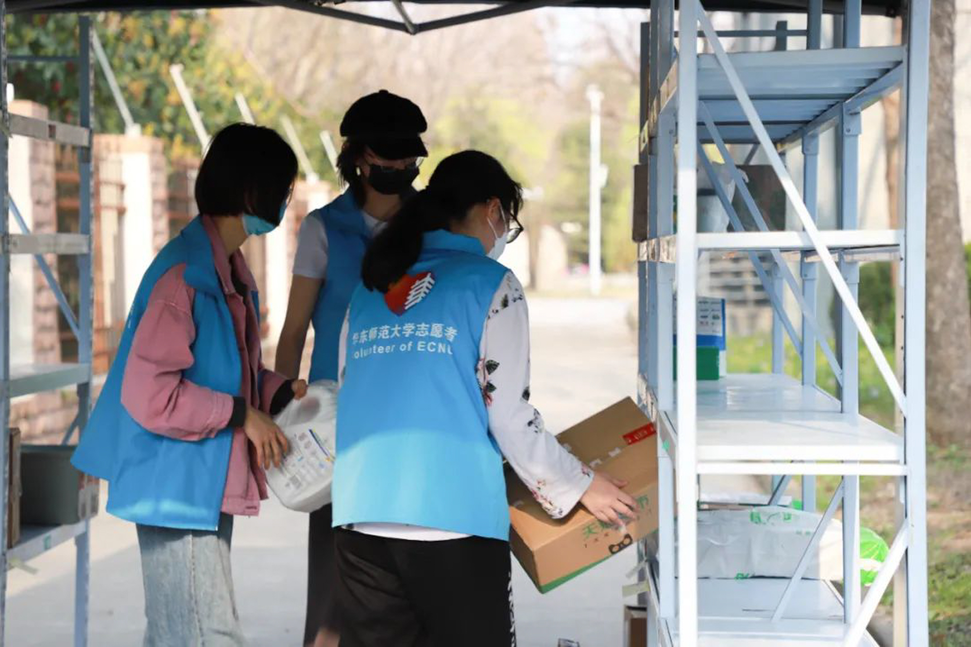 根据学校最新通知,15日零时起,两校区暂停接收外卖,并对所有外来快递进行消杀。政治学与行政学大一本科生黄佳欣被安排在闵行校区北门,负责物资运送工作,即把快递消毒,从门外运送到门内的快递架上。“我是在‘ECNU抗疫时代’群里看到老师在招募志愿者,就填了自己空闲的时间,报名参加。虽然目前这个岗位也很有意义,但我希望能够参与到更忙碌的志愿者工作中,比如运送物资到各个寝室楼,想要更多地帮助到其他同学。”