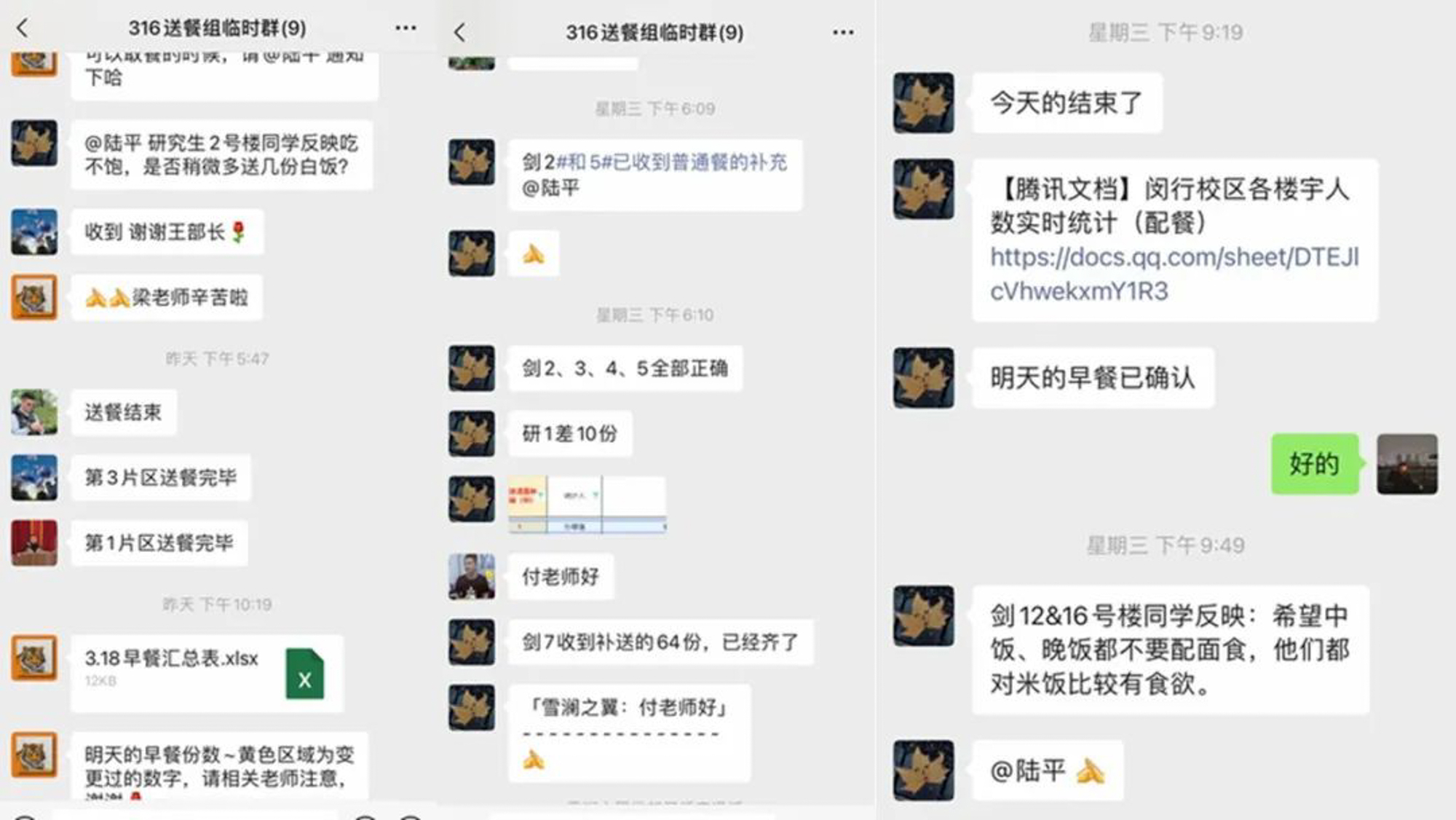 由于各楼宇上报人数渠道不同,楼宇内每日人员和需餐情况变化等原因,可能会出现部分楼宇超配或缺配的情况,工作组优化统计方式,保证每餐前都确认核实送餐数量,保证师生吃饱,减少浪费。