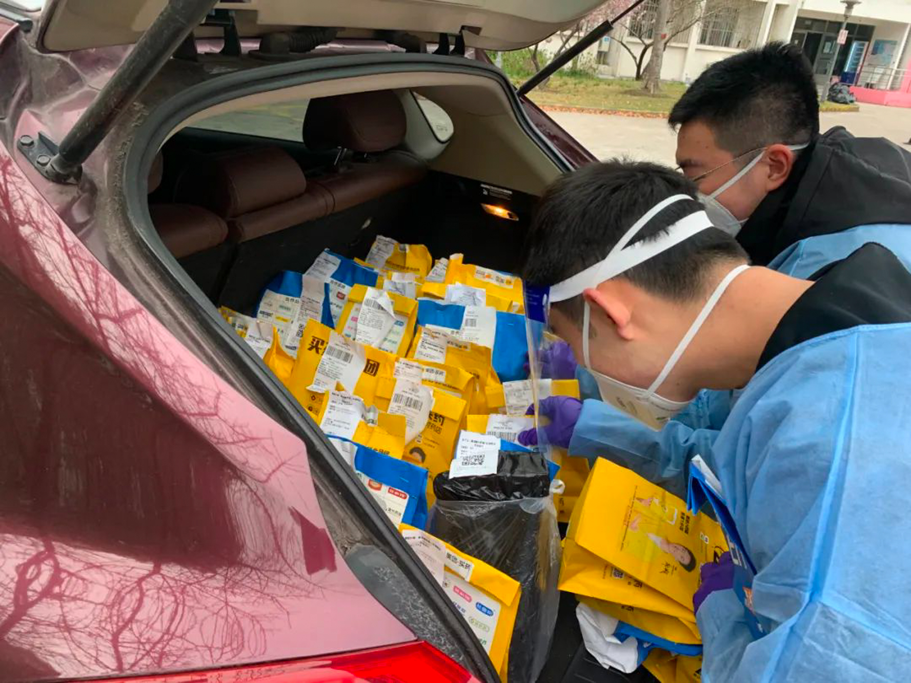 师生志愿者还到本科生公寓送急需生活用品和药物