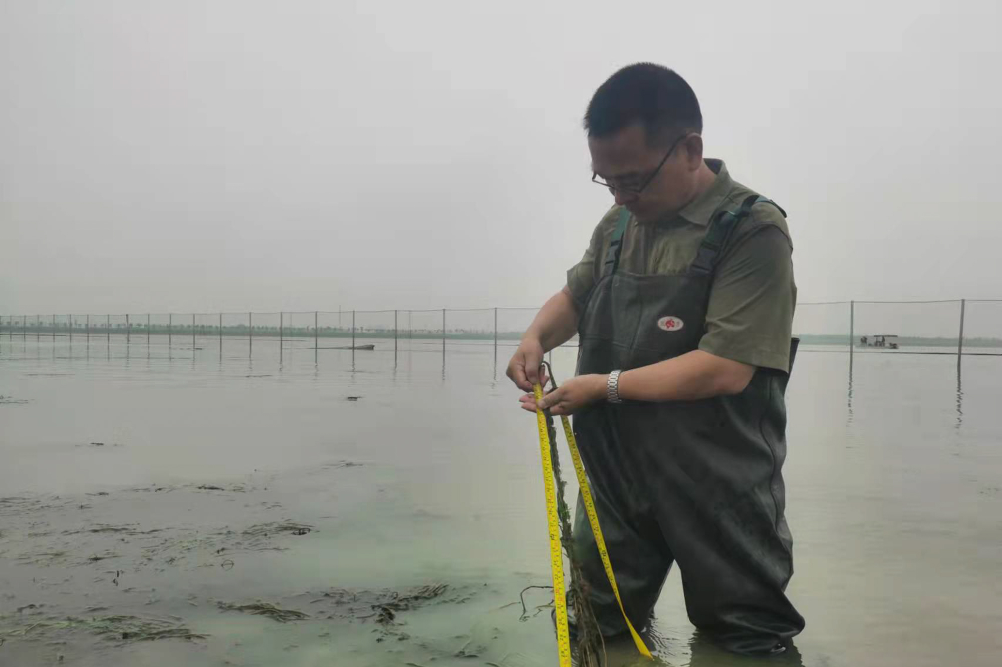 童春富在金泽水库水生植物采样