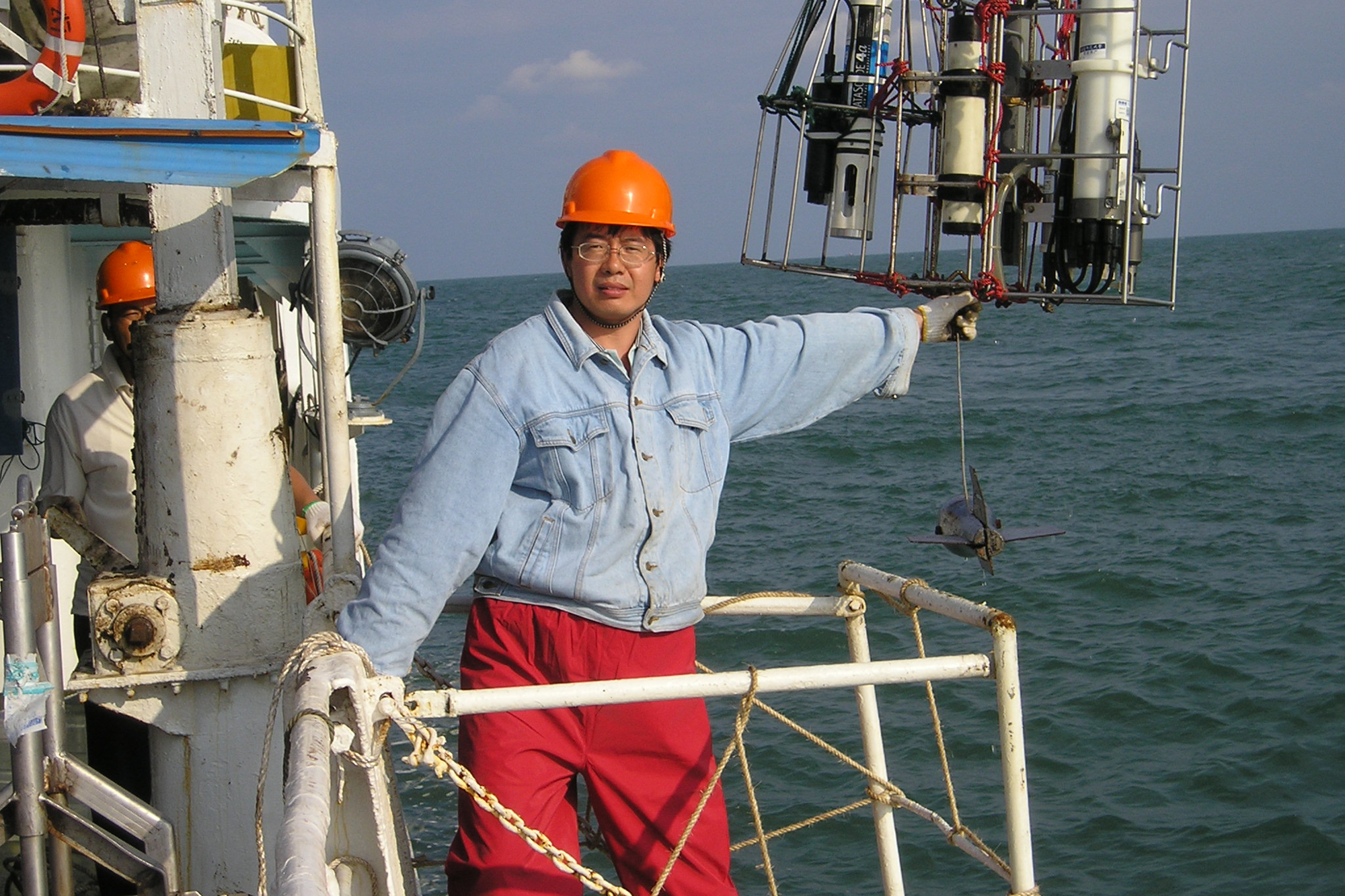 2004年9月,朱建荣在长江口外观测