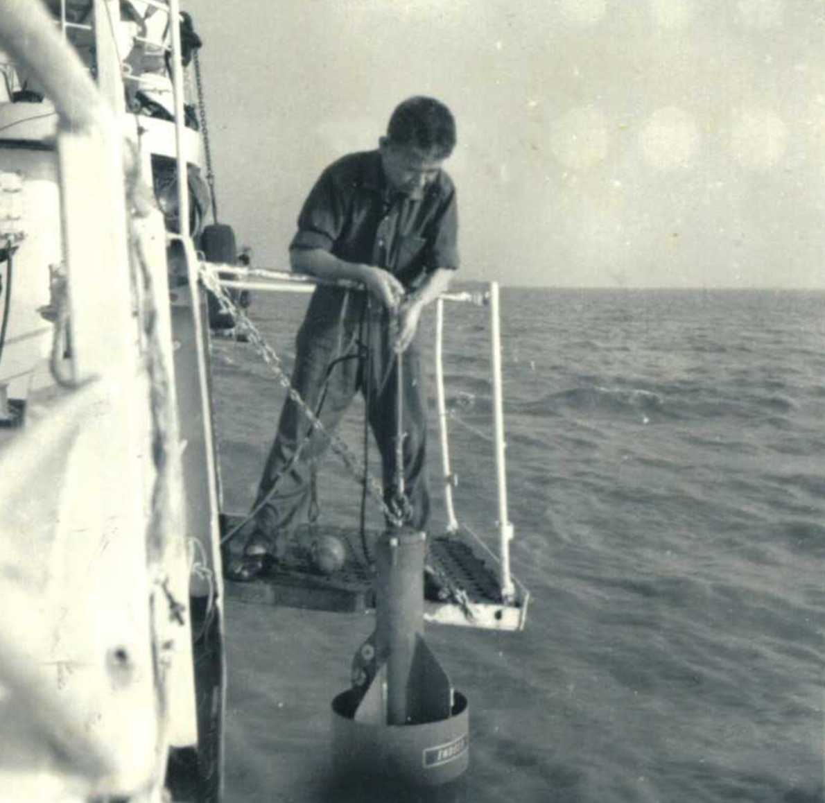 1980年,沈焕庭在施放海流计时留影