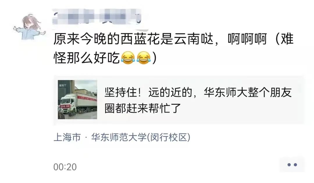 “看到好多网友现在都把蔬菜戏称为‘奢侈品’。在这样的特殊时期,我们还能吃上这么新鲜美味的蔬菜,真的很幸福!感谢所有为我们提供帮助的人,我们心存感激,与爱同行。”