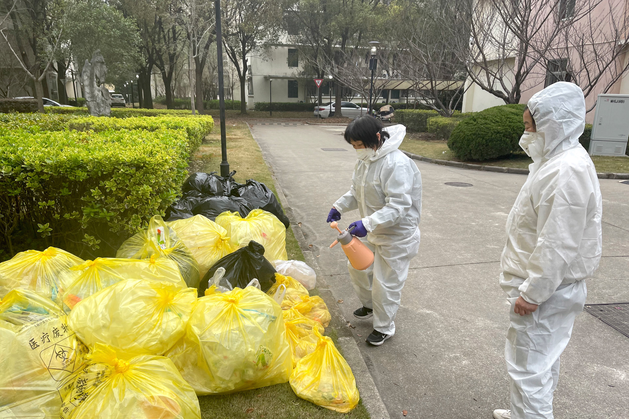 “我们调配了教学楼保洁人员去支援宿舍楼,她们回来腰都直不起来,衣服都是湿透了再干再湿透,劳动强度太大。”后勤保障部综合办主任尹敏说,现在正常楼宇要到每层将分好类的垃圾包拿下楼,但如果是管控楼宇,保洁员要对每间宿舍的垃圾先做分类,再运到一楼打包清理。