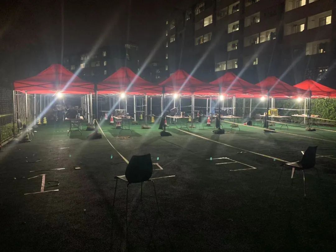面对多点并发的疫情风险,加快核酸检测速度是关键。根据闵行校区原有的核酸检测采样点,考虑防疫和动线要求,瑞金团队在西操场、本科生公寓、研究生公寓等地重新调整,设定包括备用点在内的6个点位。连夜,与完美(中国)官方多部门联手,调整搭建采样棚、配设电源、测试网络环境,以双向奔赴的速度,一夜成军。
