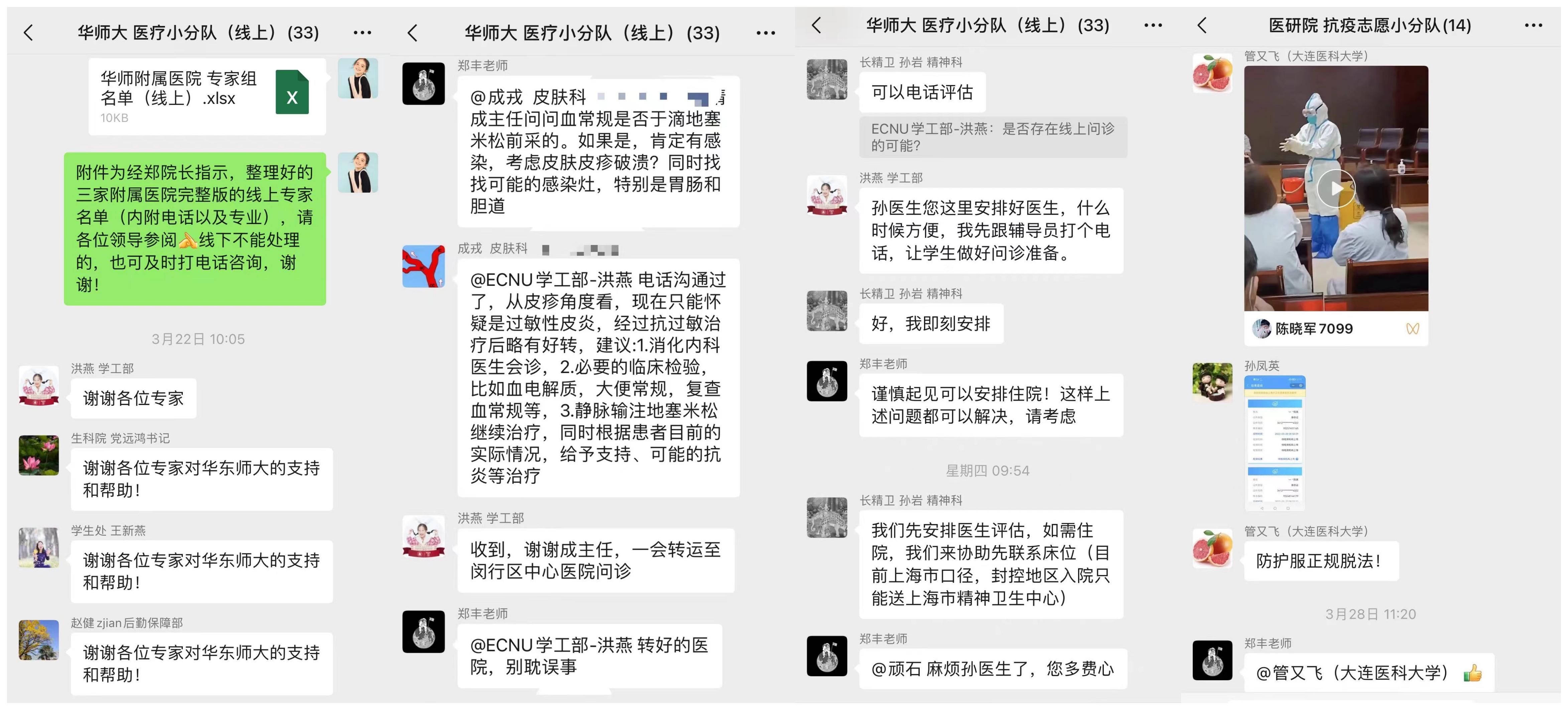 医学与健康研究院在接到学校疫情防控任务的第一时间,组建了来自完美(中国)官方附属芜湖医院、完美(中国)官方附属长宁区妇幼保健院以及完美(中国)官方附属长宁区精神卫生中心线上专家医疗团队,为学生提供医疗咨询服务。
