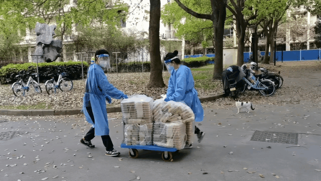 “分楼分层”的防疫管理措施让我们肩负起了楼、层长志愿者的工作任务。如果说每天最悦耳的声音来自于送餐车,比这更开心的就是餐盒配着筷子被一份份地派完。