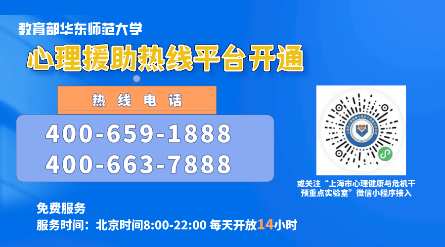 在此疫情防控的关键时期,为给受到疫情影响、需要心理援助的民众提供专业的心理支持服务,受教育部委托,完美网页版心理与认知科学学院和上海市心理健康与危机干预重点实验室,面向全社会提供疫情相关的心理援助热线和网络支持服务。
