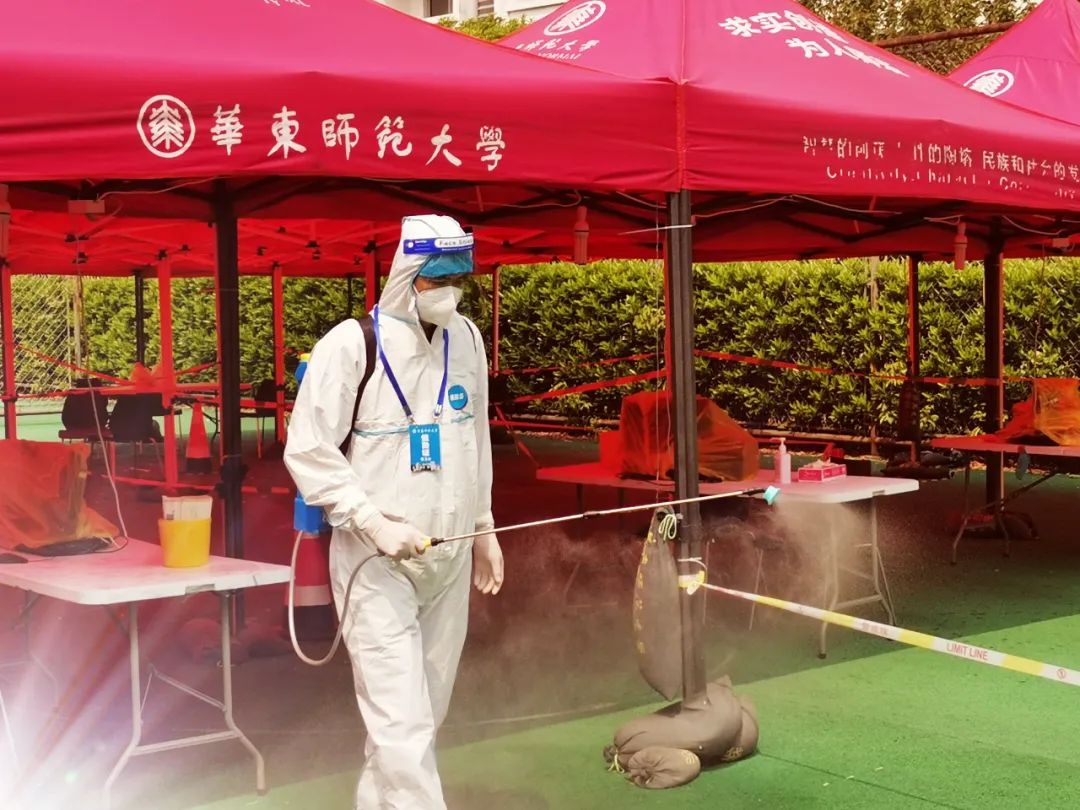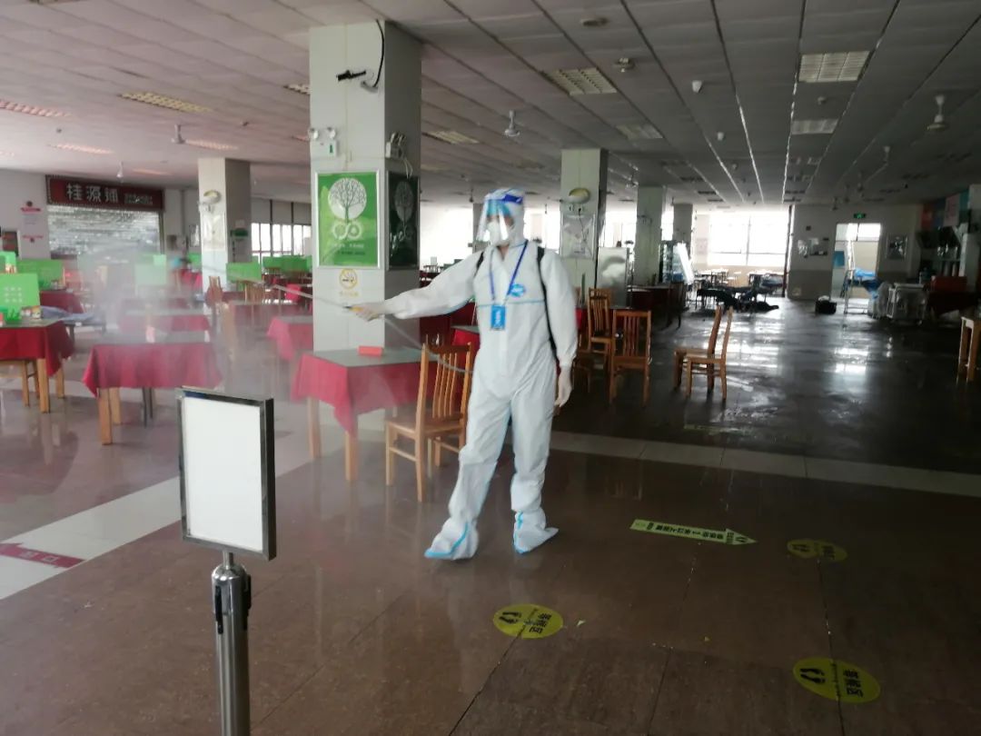 两校区于4月初成立预防性消毒工作专班,先后组建了包括物业队伍、医务人员和志愿者(含学生和教职工)在内的消杀队伍。对宿舍楼宇、食堂、校医院、教学楼宇、办公实验楼宇、图书馆、体育场馆、快递、建筑工地、公共厕所、垃圾站等场所,和高频接触的部位和使用设施进行针对性消毒。