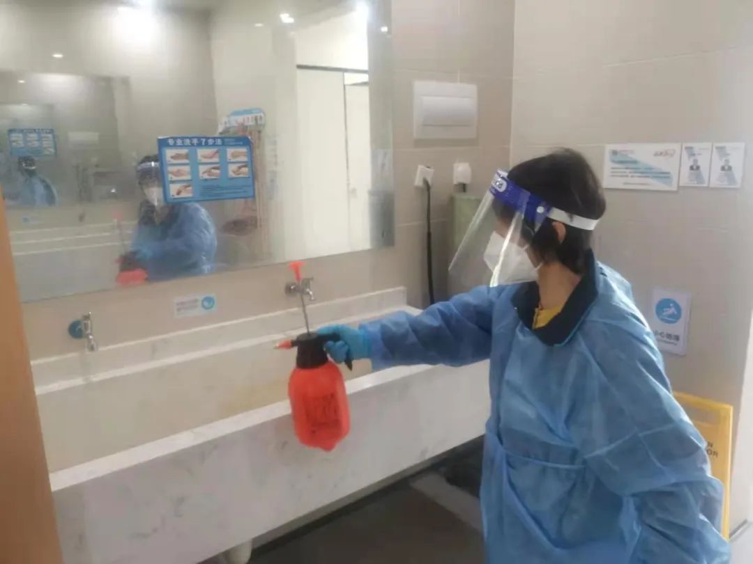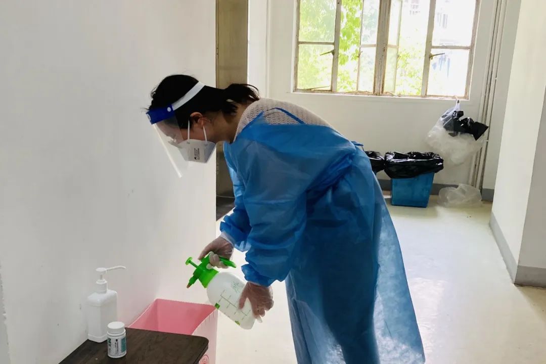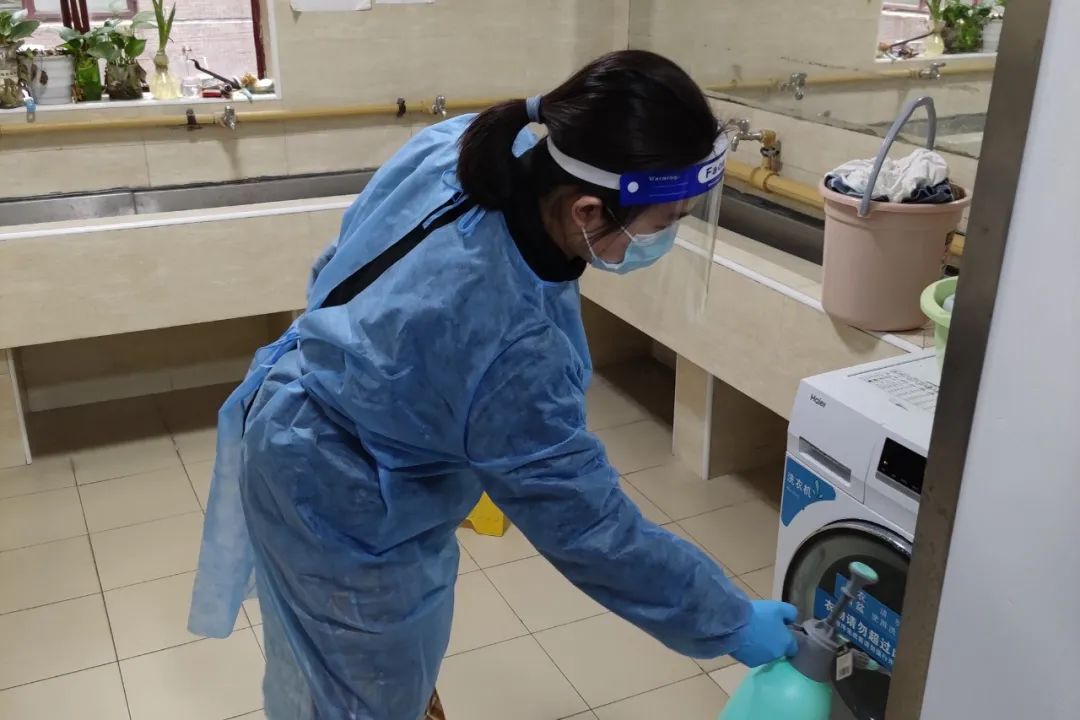 两校区各区块、片区以楼宇为单位组建志愿者队伍,每个楼层配备了1-2名志愿者。志愿者队伍在统一接受专业培训后正式上岗,各楼长为志愿者配备了喷壶、酒精喷雾等消毒工具和隔离衣、口罩、面屏、手套等防护工具,志愿者根据楼层队长的排班,每天对公共区域进行加强消杀。