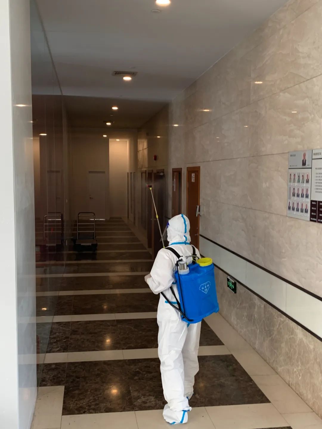 师生志愿者参与楼宇公共区域消杀