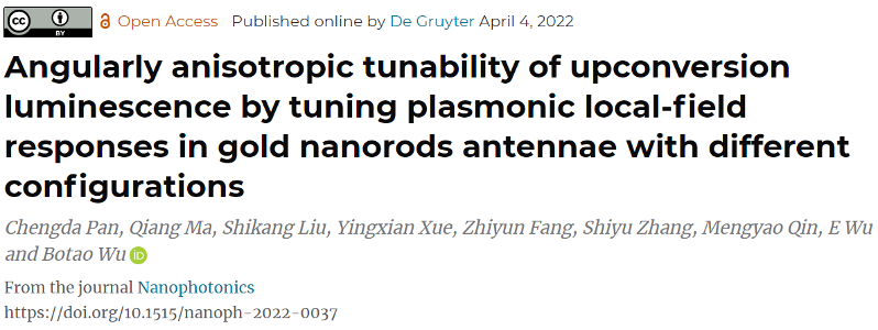 近年来,武愕教授和吴伯涛副研究员团队在基于金属纳米天线等离激元共振增强光谱方面,尤其是单颗粒尺度下等离激元调控稀土离子掺杂纳米颗粒的上转换发光方面开展了系列研究,相关工作发表在 Small、Nano Lett.、J. Phy. Chem. C 等期刊上。