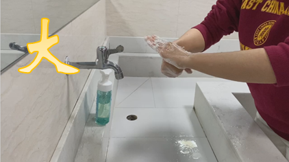 用“内、外、夹、弓、大、立、腕” 七步法对手进行清洁(洗手液、香皂均可),每一步都要认真揉搓双手15秒以上。