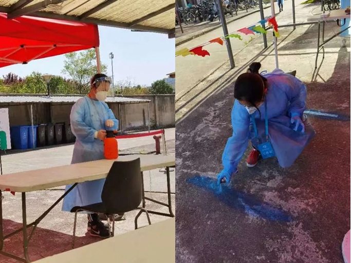 在防疫工作最艰难的40多天的时间里,我们虽然终日劳顿,却也没有视而不见小河边绚烂的早樱开到荼蘼,三月的弱柳扶风而行,丛丛如云的梨花一夜带雨,缀满枝头的樱桃娇艳欲滴,苍笼如盖的林荫大道绿意层接……然而,春风十里,却不如可爱的学生志愿者们“桃红柳绿簇春华,燕语莺啼尽日佳”。