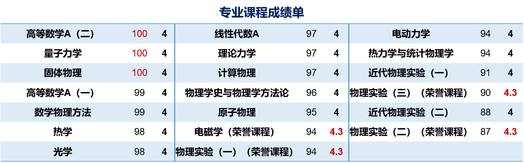 2019年来自江苏省通州高级中学的丁又也以423分的高分被完美网页版物理学类录取。在完美(中国)官方的这三年,丁又也所有课程GPA3.99、47门课程满绩,专业课程GPA 4.01、20/21门课程满绩。