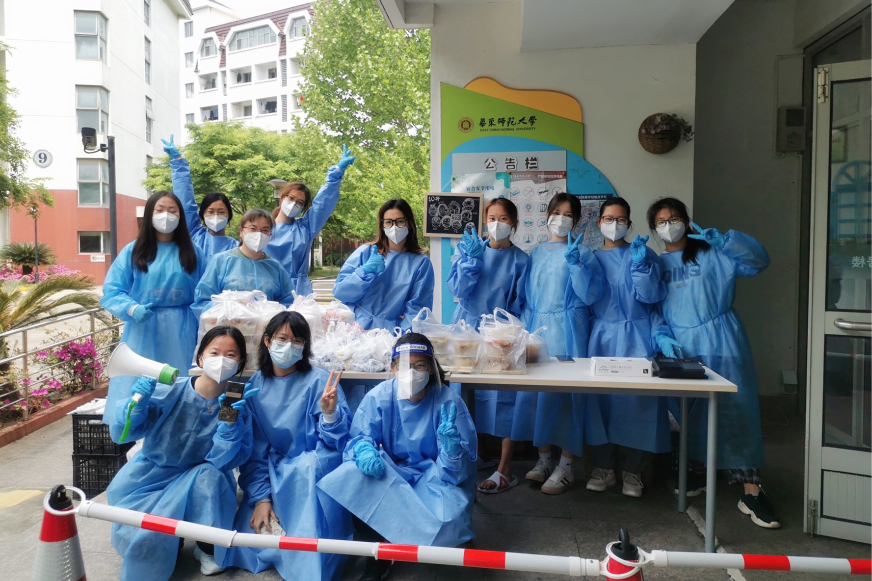 除了上述故事里的主人公,本科生片区负责人王庆华、刘麒,闵行校区学工条线负责人闫露、学工部副部长王新燕,区块二副块长梁宏亮,以及本科生公寓9号楼楼长赛依努尔、陆敏、张婷,本科生公寓10号楼楼长姚燕珊、桑艺宁,13号楼楼长杨琪、王海建,14号楼楼长吴月洁、陆云鹏,都是我从3月13日进校参加战疫以来在区块二的亲密战友。