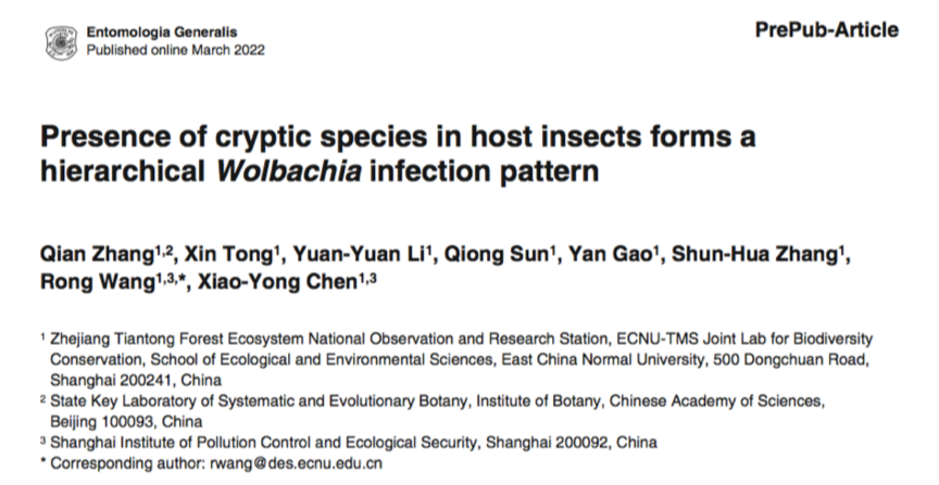 相关研究成果3月31日以“Presence of cryptic species in host insects forms a hierarchical Wolbachia infection pattern”为题在线发表于昆虫学著名期刊Entomologia Generalis。