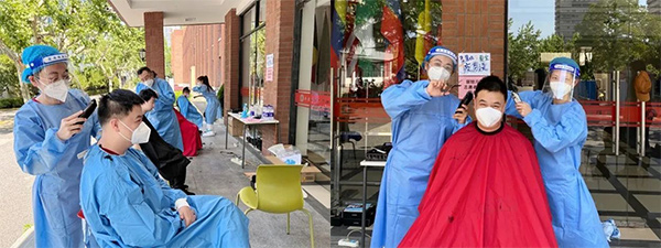 丽娃小镇“疫剪没”,我变身理发“托尼Wang”。在学校生活物资保障组的支持下,各类理发工具及镜子配备到位,师生志愿者在丽娃“疫剪没”理发点大显身手,为片区内急需理发的师生员工免费提供剪发服务。