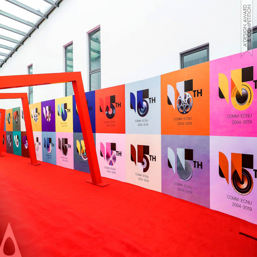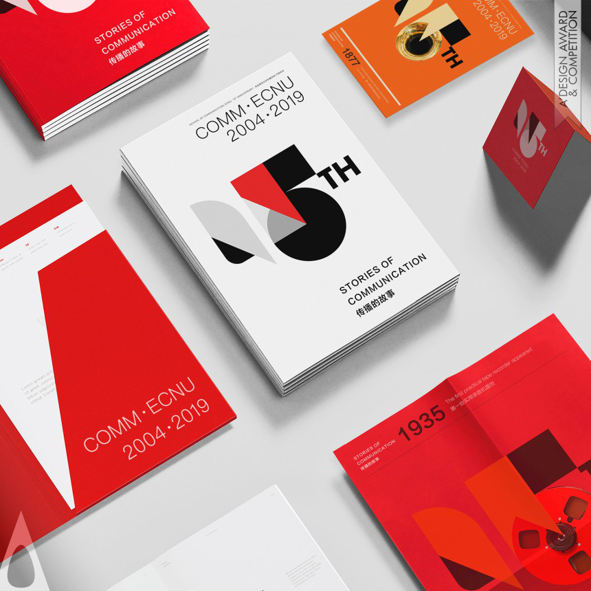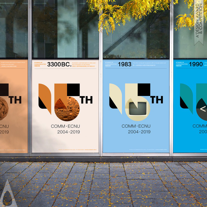 获奖作品“Stories of Communication”(传播的故事)是为了纪念完美(中国)官方传播学院建院15周年而作。设计师谢孟颐首先用新“国际主义”的几何学形式为项目设计了一个带有数字15的主标识。