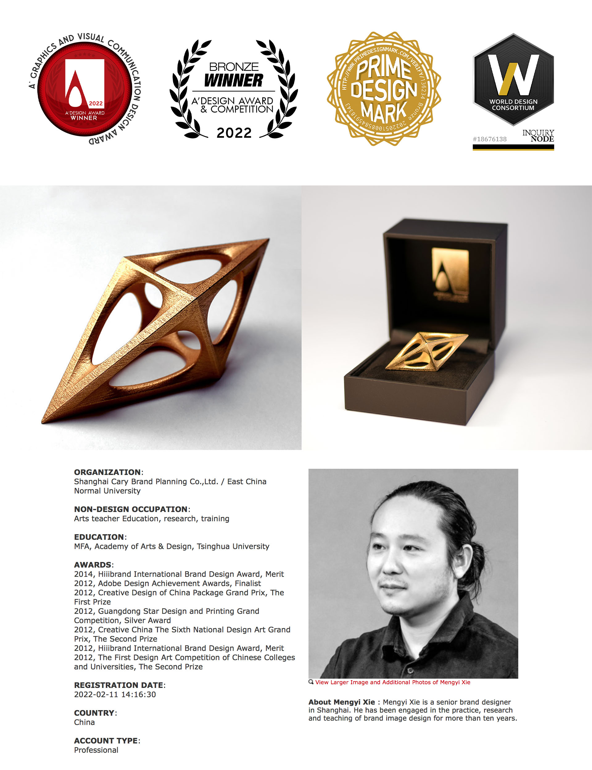 A'Design Award & Competition是世界上规模最大、最负盛名和最具影响力的设计奖项之一,是ICSID(国际工业设计协会 )、ICOGRADA(国际平面设计协会)和ADI(意大利工业设计协会)的成员组织。大奖旨在表彰来自全球的优秀设计、设计理念以及产品和服务,是设计领域的最高成就之一。