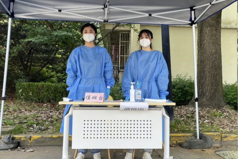 和负责老师杜源恺交流时,我突然意识到核酸检测这支队伍从封控管理第一天起,已经经历了50多天的风雨,一路陪伴研究生公寓走到了现在。