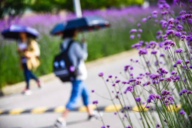 后勤保障部介绍,当时有两个方案,一个是种植薰衣草,但是因为这里碱性土壤不适合薰衣草生长,为了给同学们一个温馨美丽的校园环境,选择种植了柳叶马鞭草,也希望能够和向日葵、油菜花一样成为一道特别的校园景观。