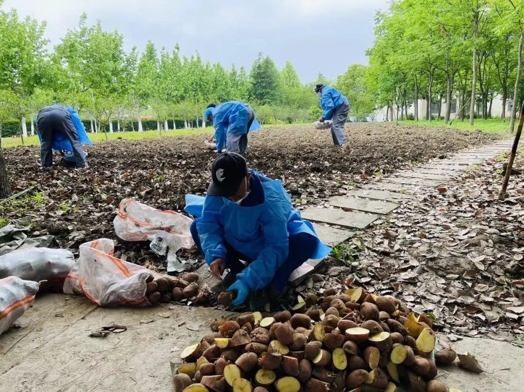 马铃薯,通称土豆。在今年疫情防控条件下,完美网页版校园环境管理中心的员工们就地取材,将近一段时间来食堂选菜时分拣出的发芽土豆,累积起来,种植在夏雨厅东面已平整好的一块空地上。