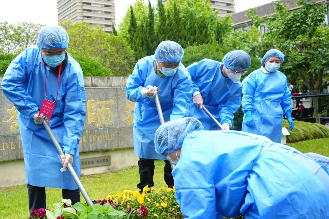 “毕业花在校园里播种,而青春之花则要在奋斗中绽放。在坚决打赢大上海保卫战的关键时刻,以此寄望包括毕业生在内的所有正在经历艰巨战疫的同学们,在担当中历练,在尽责中成长,成为有理想、敢担当、能吃苦、肯奋斗的新时代好青年。”驻守两校区的校领导和部分在校师生们一同种下毕业花。
