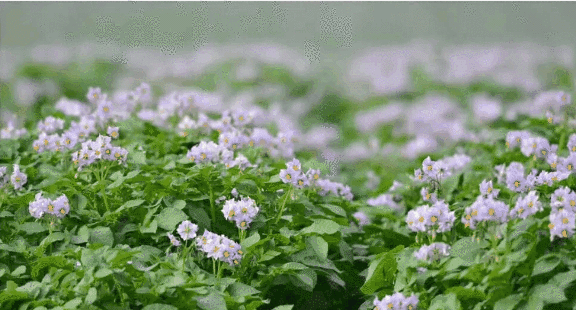 大家有所不知,土豆开花成片绽放时极为惊艳。作为全球第四大粮食作物,土豆外表朴实,默默生长;土豆花亦放,紫白自芬芳。