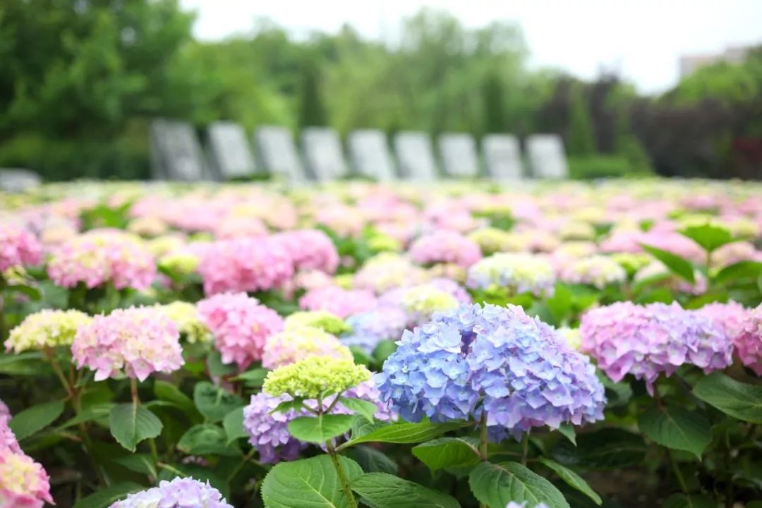5月14日、15日,在闵行校区文脉廊和普陀校区校训碑前,10000株圆锥绣球在校园扎根,和毕业生们一同迎接盛夏的到来。